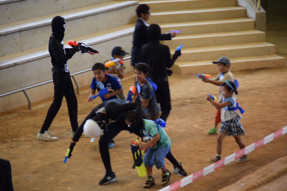 小学校の校舎で、ハンターなんてしたら、子どもたちは大喜びでしょ。
