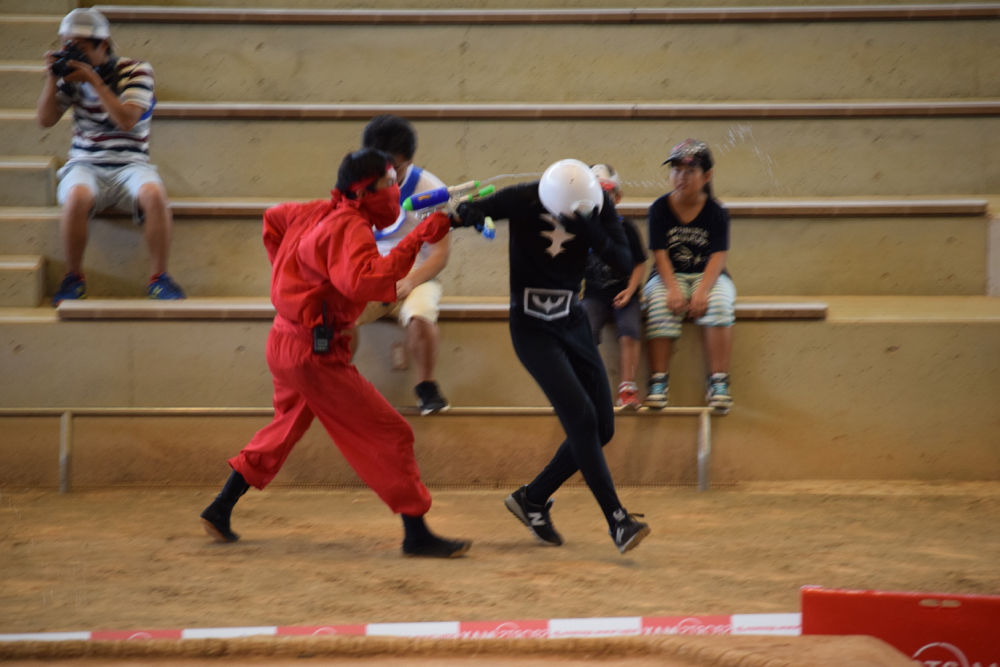 手裏剣を投げたり。