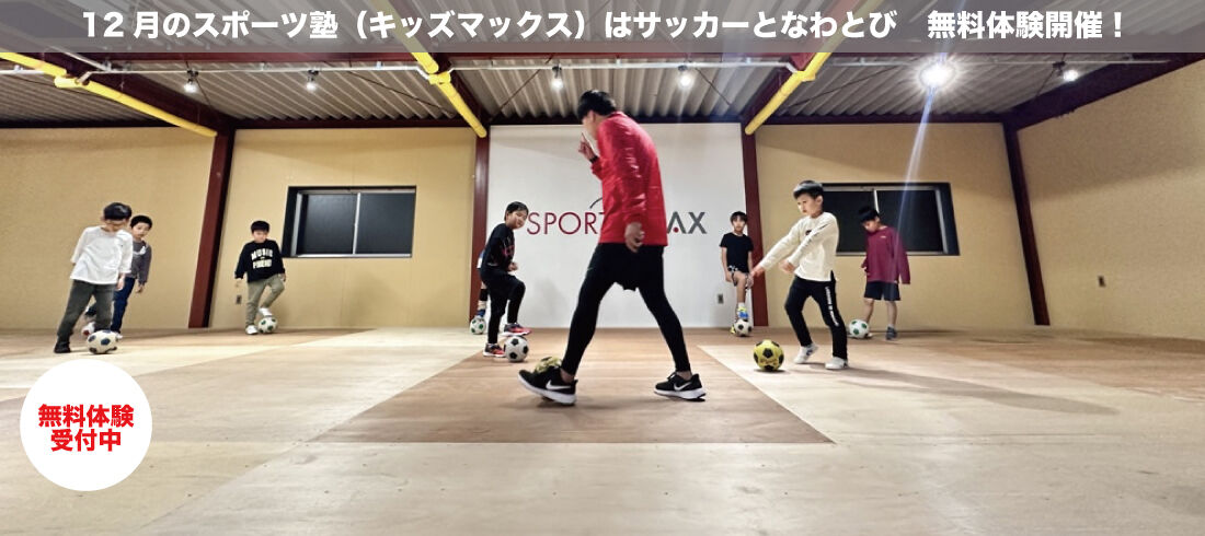 12月のスポーツ塾(キッズマックス)は、サッカーとなわとびです。