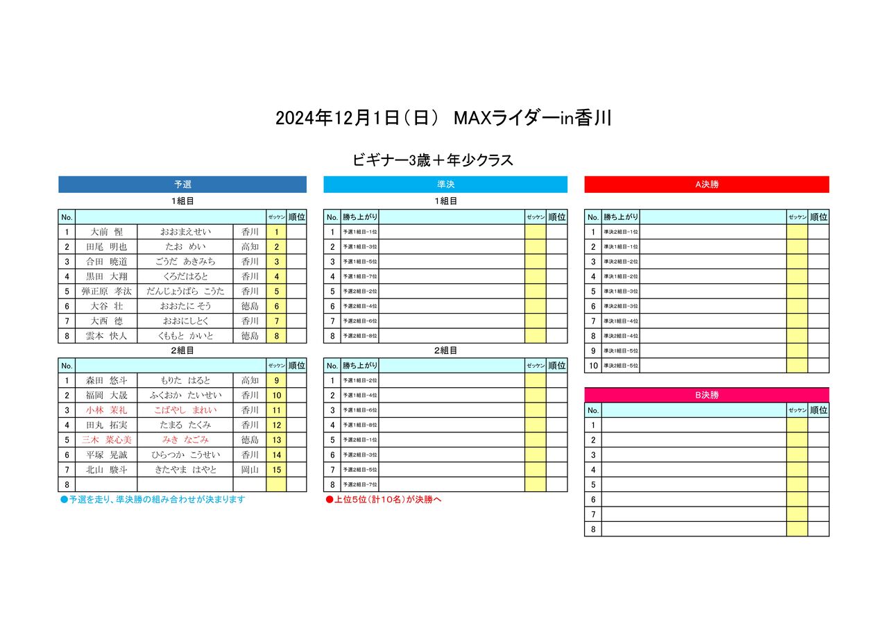 ※周回数が同じで、順位が違うのは、ゴールした順位となります