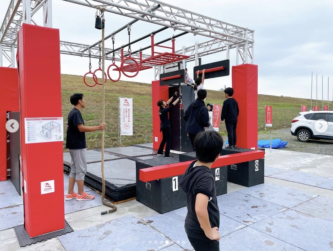 オブスタクルとは「障害物」の意味で、全長100メートルのコースに12種類の障害物があり、全て乗り越えてゴールまで走りきりタイムを競う競技です。